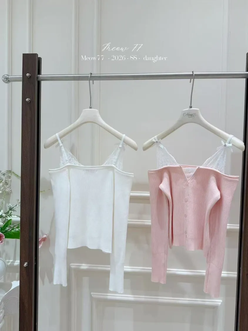 穿起來是那種很溫柔又有一點小性感的感覺 自帶氛圍感裡面做 蕾絲肩帶+小蝴蝶結設計