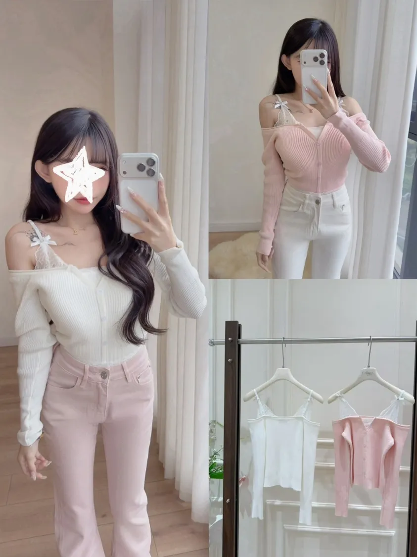 露出來的細節很精緻 整體會有一點法式溫柔感而且很好搭配長褲、短裙、長裙 都會很好看