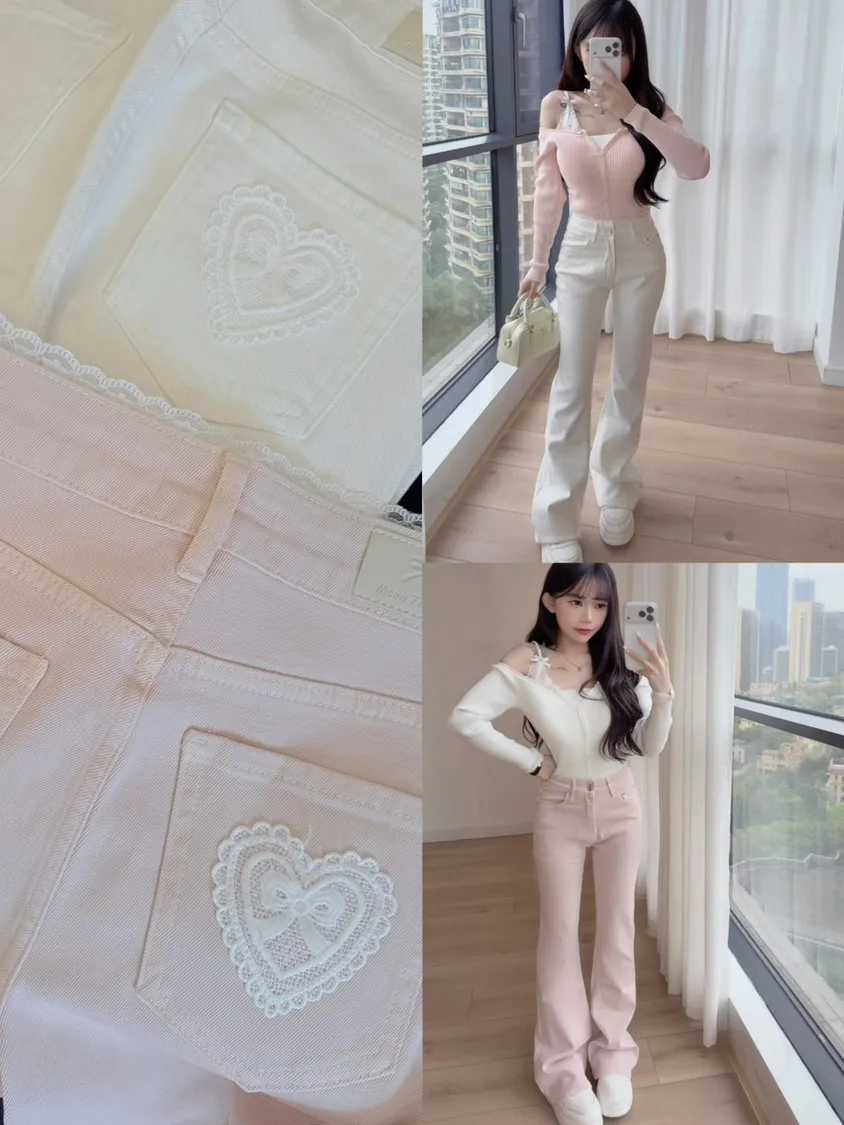 「這件背後的愛心和褲頭的蕾絲設計真的好美小細節真的很可愛 整體看起來很有特色穿上整個腿型會變得很直