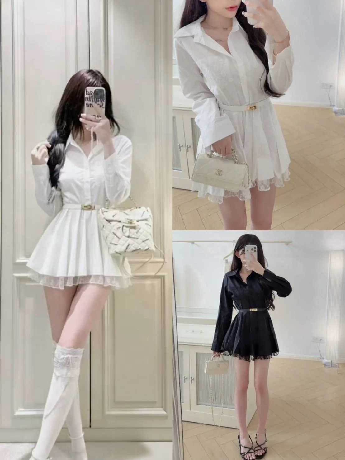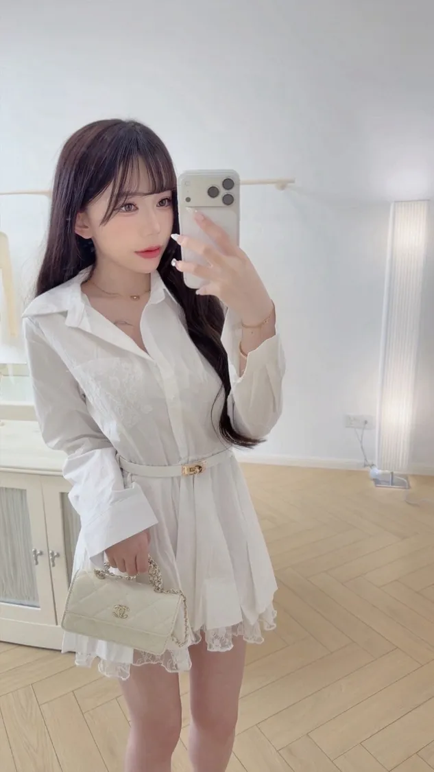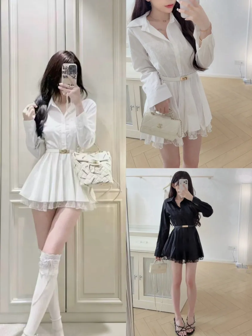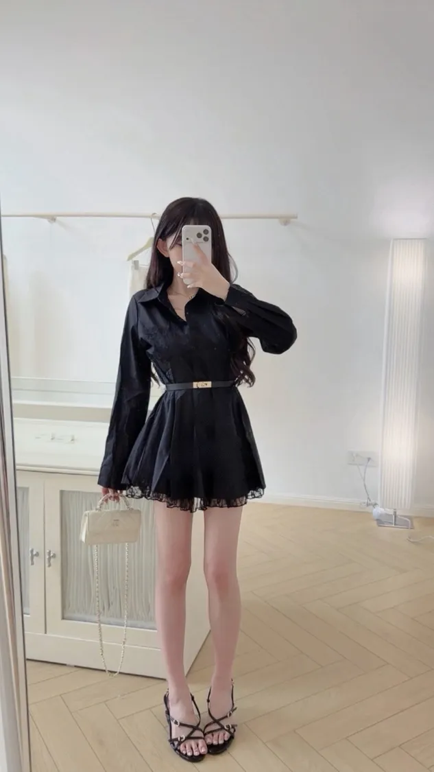 這件真的很有氣質!做成襯衫版型的小洋裝穿起來腰線會很明顯 整個人比例超好